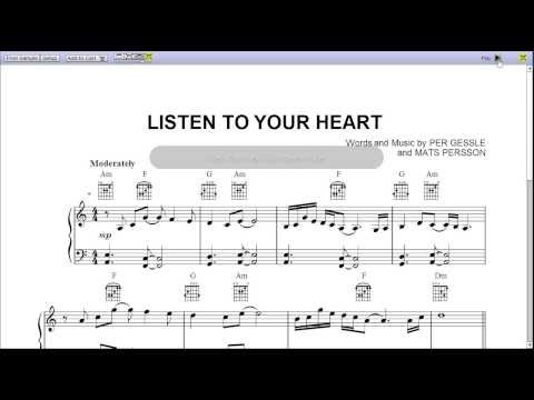 Listen To The Music Sheet Music }}- Download 5 pages of Listen To Your Heart piano sheet music at http://www.singandplaysong.com/artists/roxette/listen-to-your-heart/ "Listen To Your Heart" is a ...